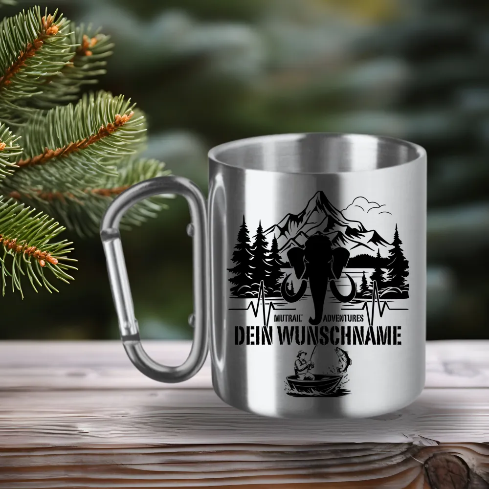 Personalisierte Angler Tasse Edelstahl mit Karabiner